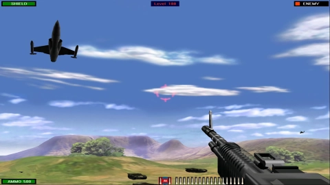 7、现在就开始射击吧,用鼠标左键进行攻击,通过转动鼠标来调整方向,直升机可以直接击毁。