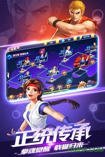 《拳皇觉醒》是一款获得SNK正版授权的卡牌游戏,集结了SNK旗下的全明星阵容与众多顶尖格斗家。其玩法延续了《小冰冰传奇》式的经典卡牌对战与养成模式,除了还原漫画原著的核心剧情外,还新增了丰富的原创故事线与结局分支,感兴趣的玩家不妨体验一番!