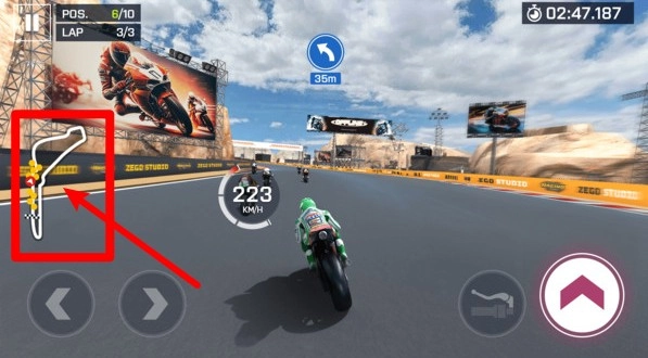 1.地图赛道导航:左上角呈现整条赛道路线图,可随时知晓自身与对手的位置及剩余距离。