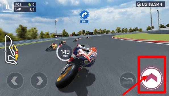 2.加速操作指令:点击右侧紫红色按键可立刻启动强力加速,在直道冲刺时迅速拉开差距。