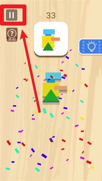 2.暂停与通关动画:点击画面左上角的暂停按钮可随时暂停游戏进程;当匹配成功时,系统会自动播放彩带动画,以此提示通关成功。