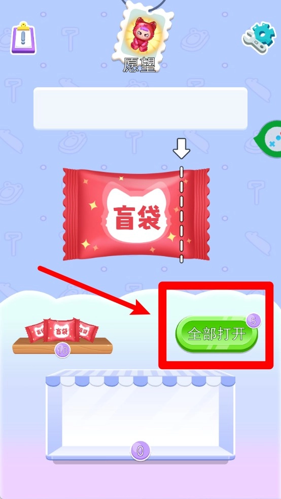1.开启盲袋:玩家每次开启盲袋时,可选择心愿卡辅助开启流程,收集不同的果冻人角色,以此增添玩法的趣味性与探索感。