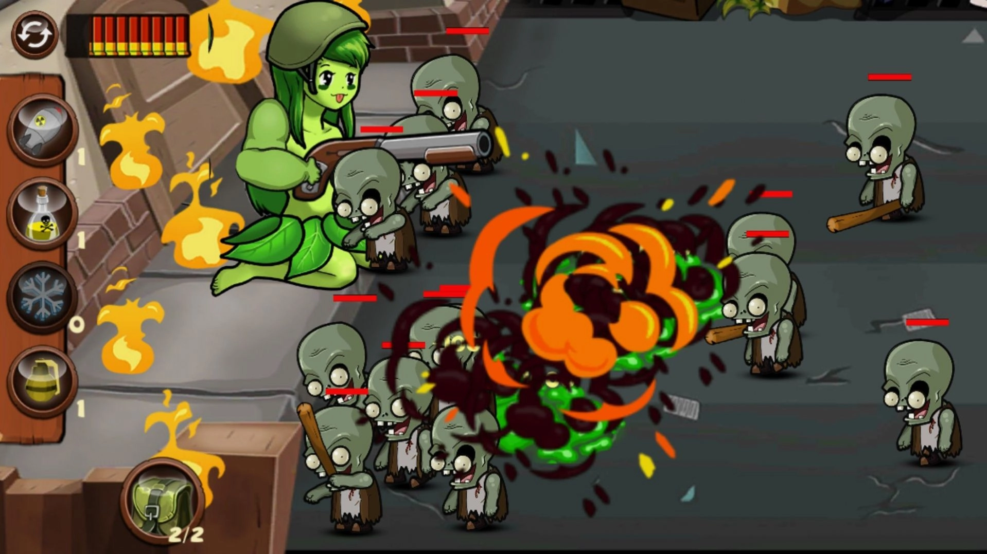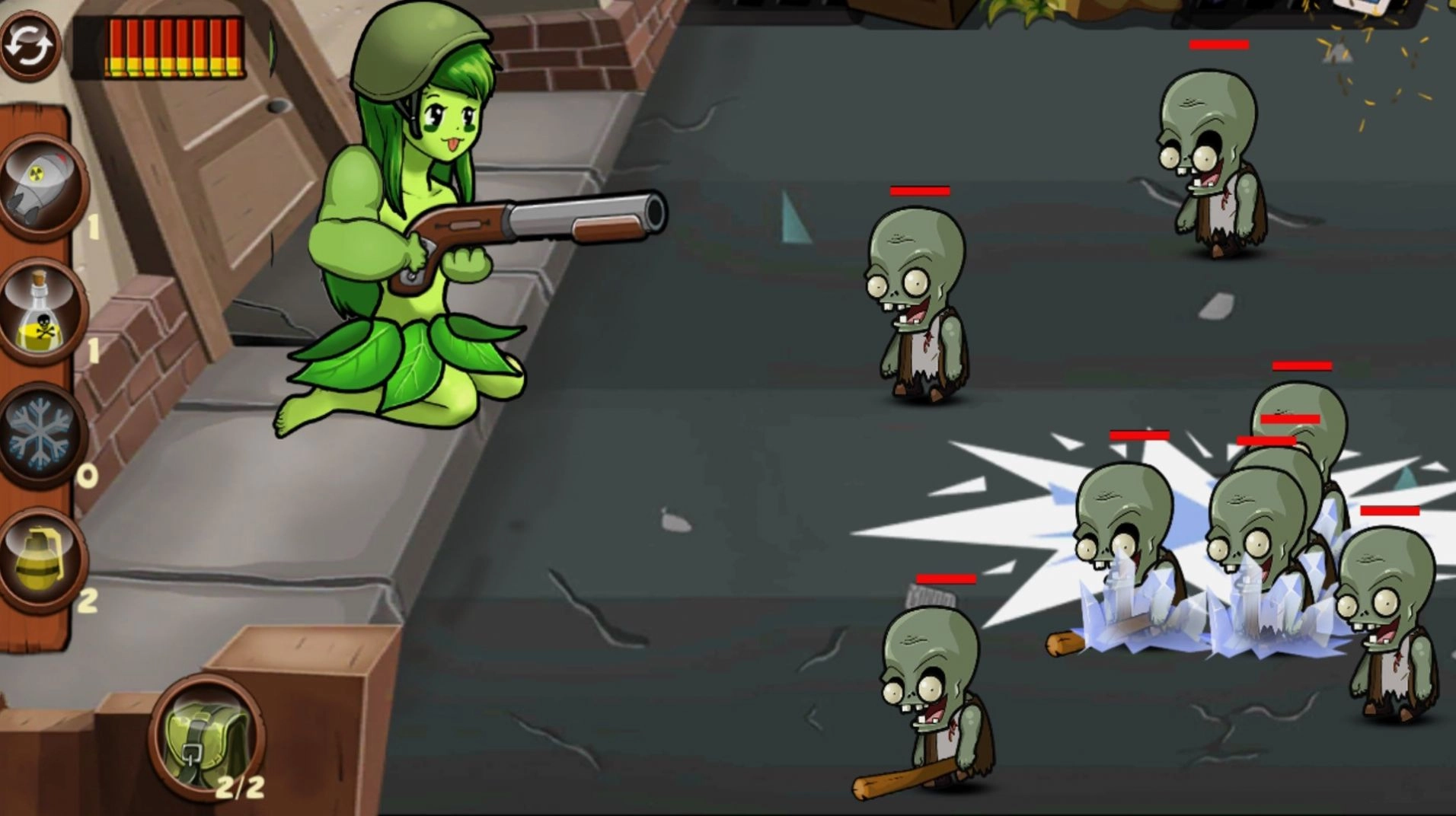 3、在欢乐的游戏过程中,尽情展现你的脑力与指挥天赋,将僵尸一一消灭。