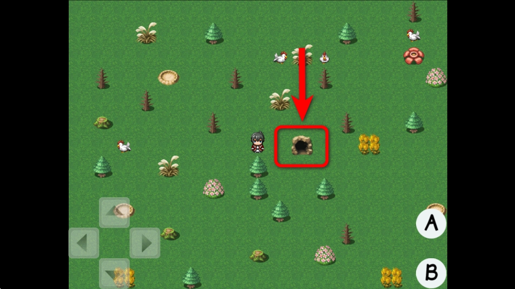 2.剧情结束后就能开始移动了,左下角是移动按钮,右下角是交互按钮。