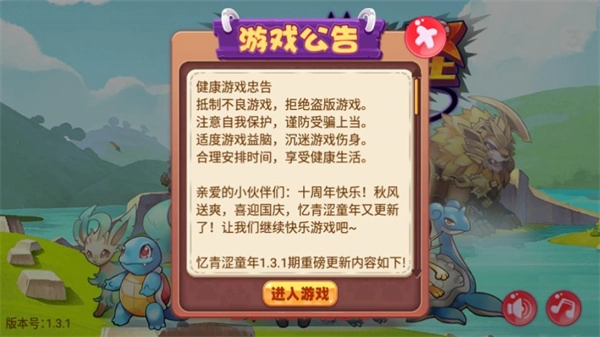 1、首先回忆口袋妖怪承载的青涩童年,完成相关准备后启动游戏,浏览初始公告信息,就能进入主界面开启冒险。
