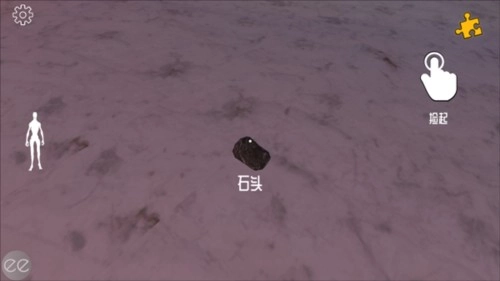 5、首先来到旁边的雪地上,捡起地上的石头;