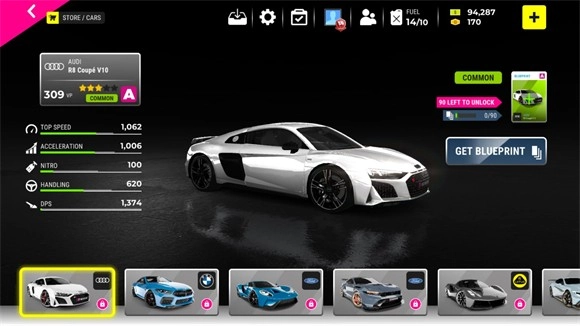 1、使用金币在商店解锁全新的赛车。