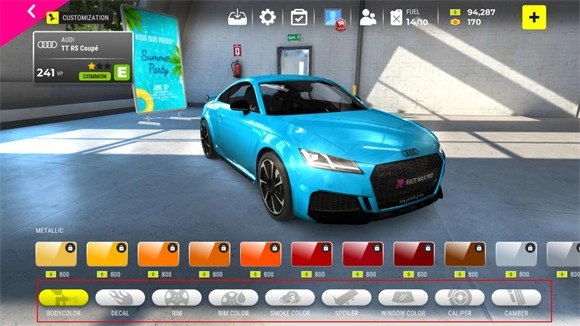 3、可以对赛车的外观进行自定义。