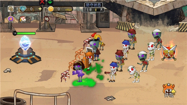 2、利用材料提升军队等级,解锁更多角色,壮大军队规模,与丧尸展开无尽的激烈战斗;