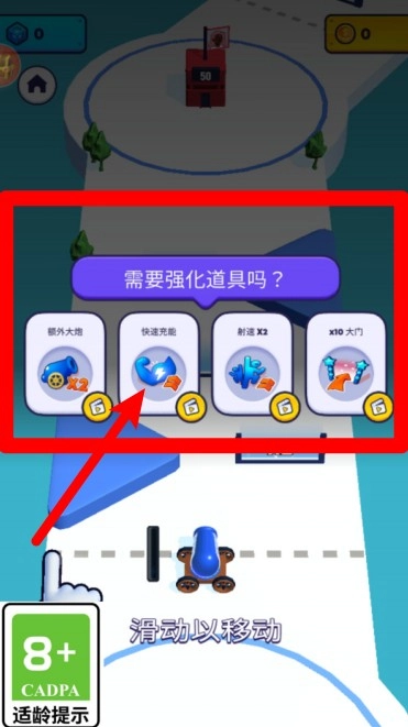 2.在关卡开启前,玩家可以挑选强化类道具,像快速充能、创造加倍之类,这类道具能够助力玩家更顺利地通关关卡。