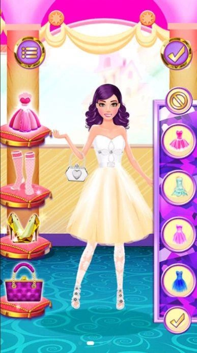 装扮方式十分简单,用户仅需使用现有的服装、美妆工具和发饰来装饰公主,就能完成装扮操作。