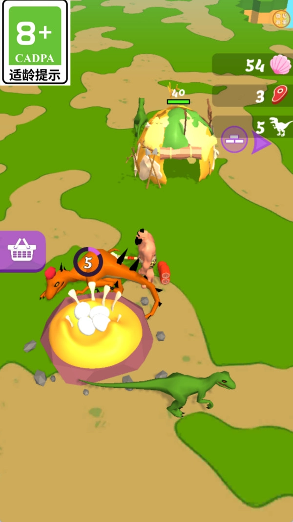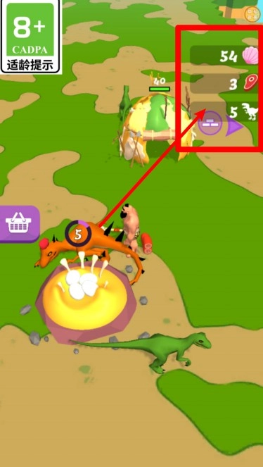 3.资源收集情况:右侧界面会呈现贝壳、钥匙以及恐龙的数量,玩家需借助探索与驯服的方式来积攒这些资源,从而实现村庄规模的扩大。