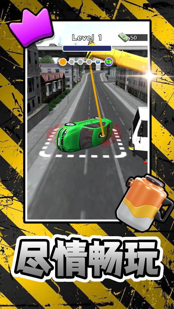 3.当前关卡的进度清晰明了,每完成一次车辆吊装操作就能前进一格,操作速度越快,效率也就越高。