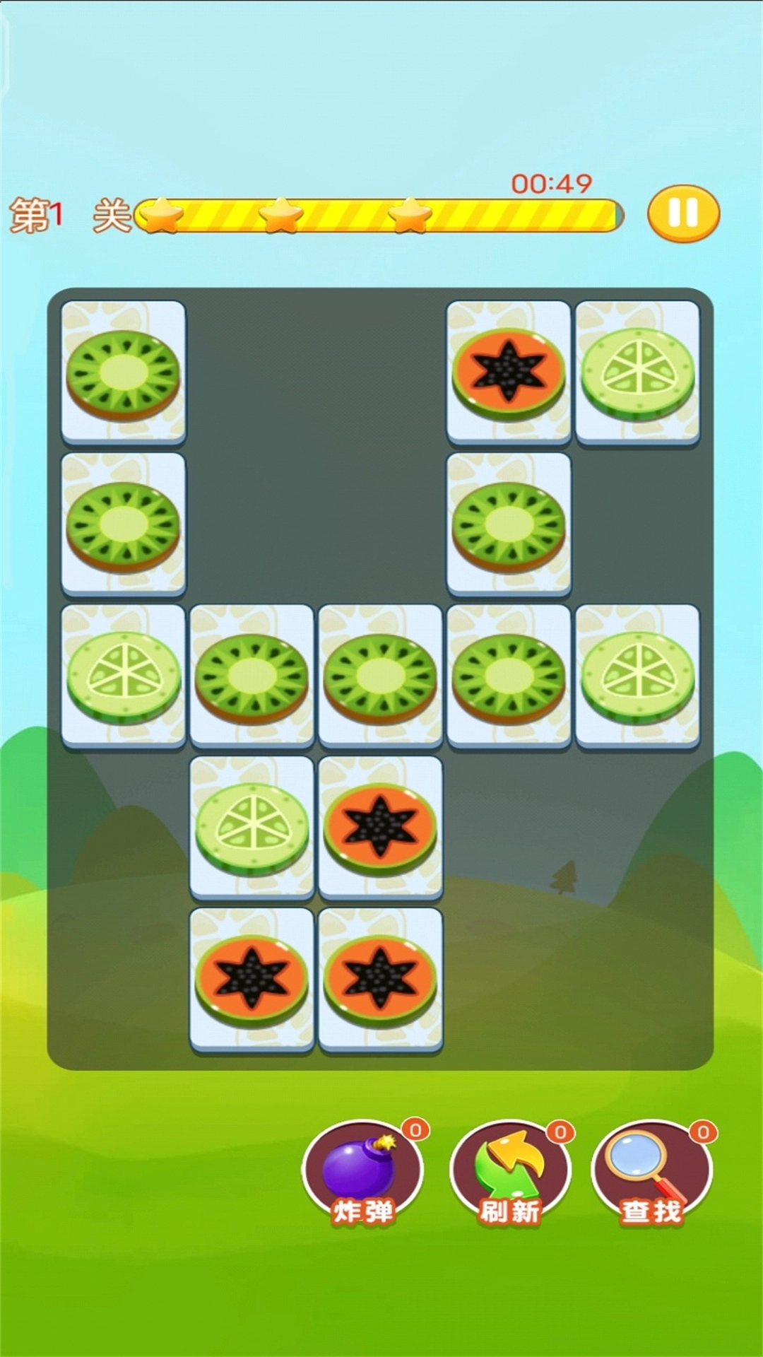 1、这是一款经典的连线消除类益智游戏,玩家需在限定时间内,将相同的水果图案连接起来以完成关卡;