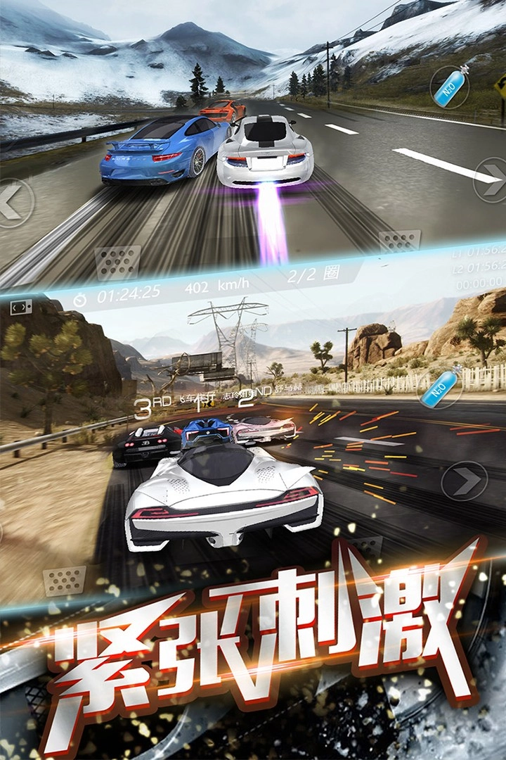 3.计时赛:在限定时间里全力冲过赛道终点,从容体验计时赛模式,秀出对速度驾驶的极致掌控。