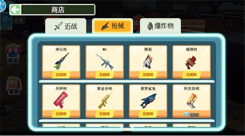 3、玩家在正式开始战斗前,可先前往商店解锁自己感兴趣的武器,这样就能在战斗中使用这些武器了。