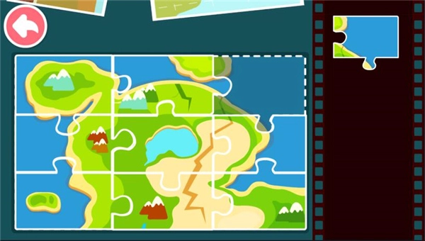 4、将右边出现的照片碎片放在屏幕中的拼图当中。