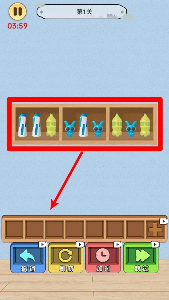 1.匹配搜寻:仔细查看满柜的各类物品,通过点击操作找出相同的物品进行配对并消除。想要获得高分,迅速锁定目标至关重要,这十分考验玩家的观察力与反应能力。