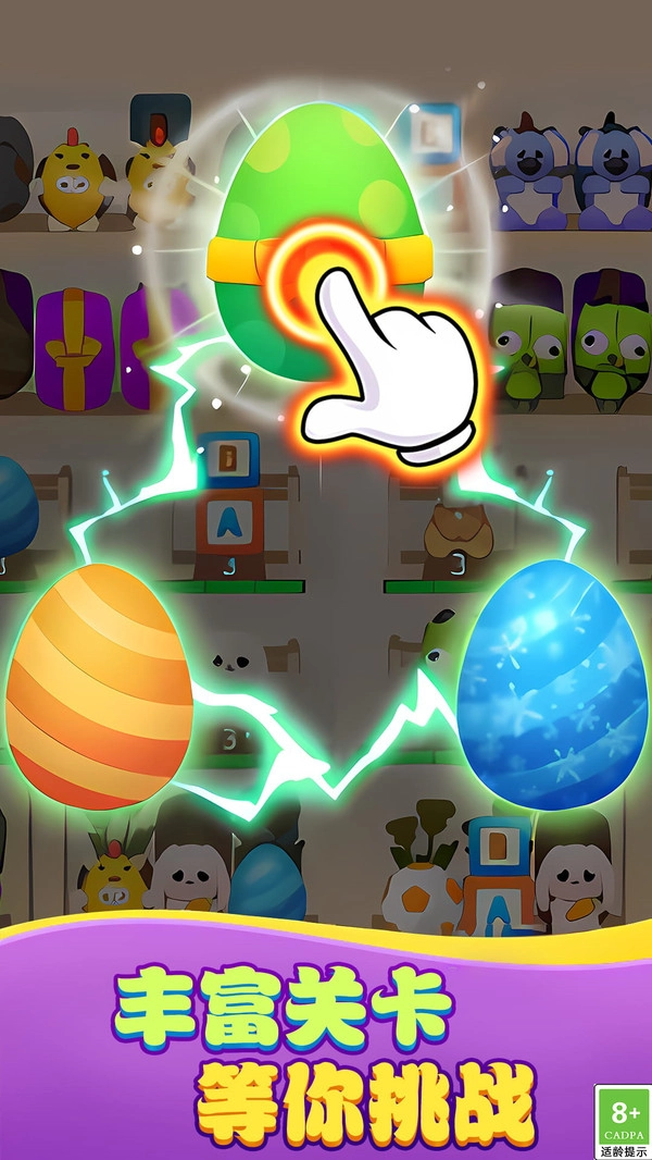 《消除专家》是一款休闲益智类消除游戏。玩法很简单,只要三个或以上相同的彩蛋连在一起,点击就能消除。不过要击败敌人,得连续七次快速消除来触发攻击模式,而且每次消除的间隔必须非常短,稍微停顿一下就会前功尽弃。游戏共有80个关卡,敌人的技能各不相同,还会不断升级,给玩家带来持续的挑战。另外,消除过程中可能会随机出现道具,帮助玩家更轻松地通过关卡。快来挑战一下,看看你能不能成为真正的消除专家吧!