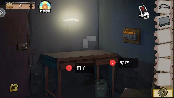 2、返回第一关的保安室,用钥匙打开左侧抽屉,拿到半个钳子,右侧抽屉里能找到蜡块;