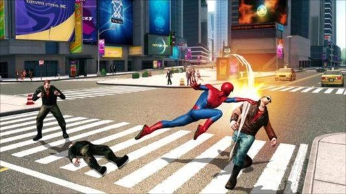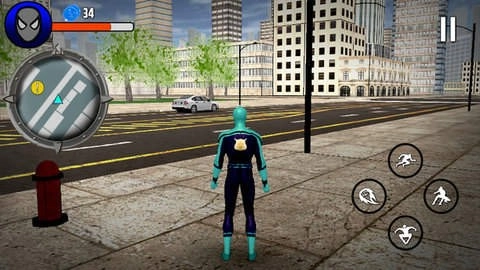 1、玩家能够在3D开放世界里自由行动,操控超凡蜘蛛侠守护城市。