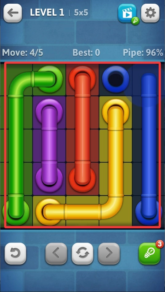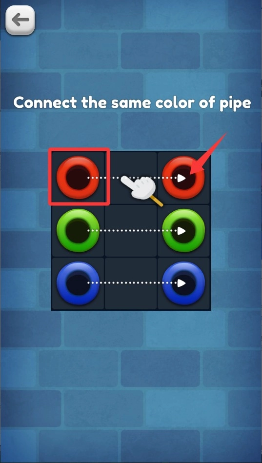 1、基础连接操作:点击选择管道,拖动旋转调整方向,把相同颜色的管道首尾相连,以此获取星级评价。