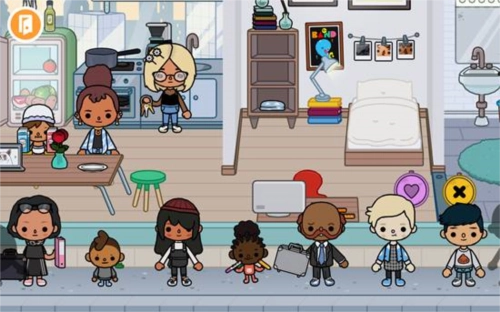 5、也可以点击左上角的退出房间按钮,回到自己的家中,能看到有不少小朋友,点击任意人物或物品都能移动。