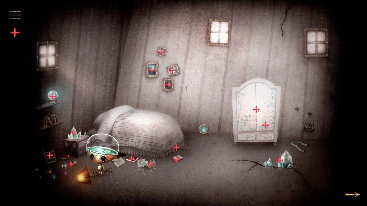 核心玩法采用经典的点击解谜模式,玩家在场景里通过鼠标点击探索各类可互动元素,像可收集的道具、待的谜题与机关、能提供信息的NPC等。玩家借助点击操作解开谜题,逐步推动关卡进程。这类解谜属于较为传统的类型,玩家主要通过观察场景和反复点击尝试来行动,先找出当前场景中的可交互元素,再结合剧情与场景设定思考如何运用这些元素。