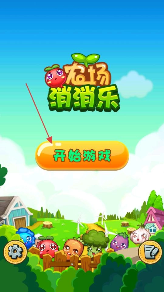 1、打开佳作的初始界面后,能看到一个橙色的开始按钮,点击这个按钮,界面就会跳转到关卡选择页面,从而开启消消乐的挑战旅程,为进入核心玩法做好准备。