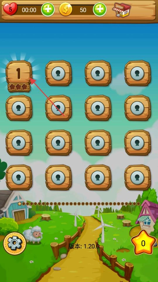 2、在关卡选择界面,找到标有数字1且没有锁定图标的关卡方块,点击这个方块,系统会加载对应的关卡内容,随后进入第一关的消消乐挑战场景。