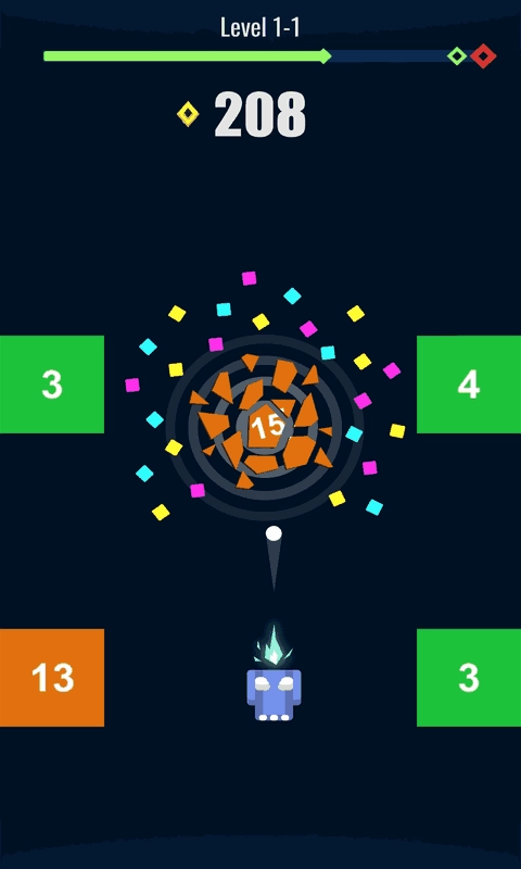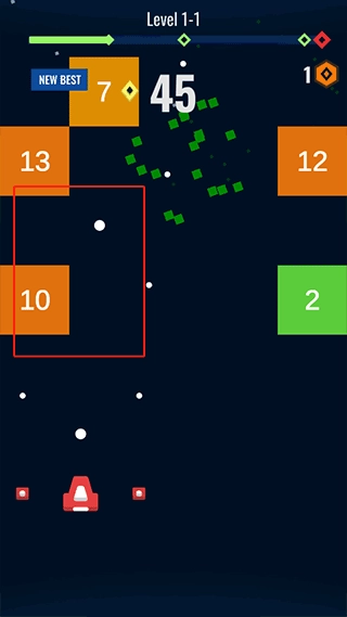 2、只有把方块里面的数字击打为0后才能突破障碍。