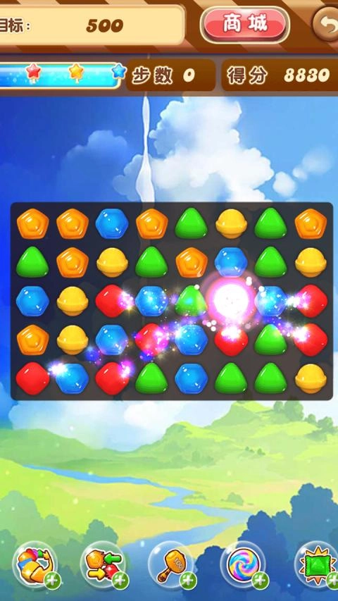 1、基础消除技巧:只要匹配三个及以上同色糖果就能完成消除,T型或L型的匹配方式可以生成强力特效。优先处理底层的糖果,这样更容易触发连锁反应,从而获得更多的连击机会。