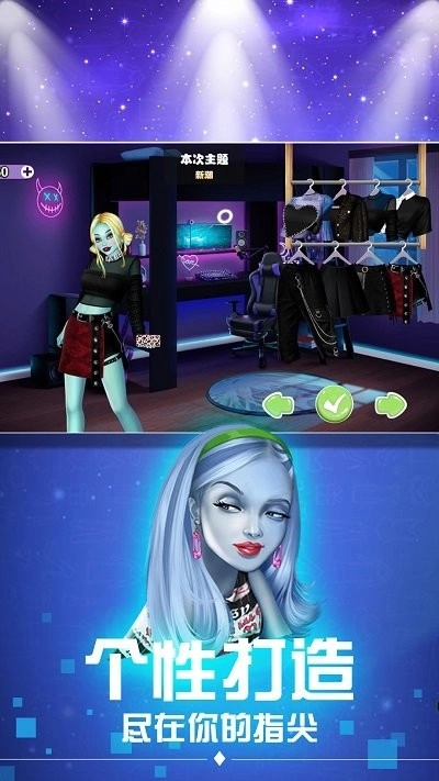 2、多元时尚穿搭:涵盖丰富的服装、鞋包、发型、妆容等时尚单品,满足玩家个性化搭配需求,打造专属潮流造型;