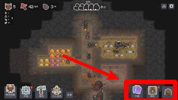 3.资源收集机制:玩家需要派遣蚂蚁去收集食物、晶体等各类资源,这些资源将用于支持蚂蚁的进化以及巢穴的建造,这种层层递进的系统设计,能让玩家沉浸在资源调配与巢穴建设的独特节奏里。