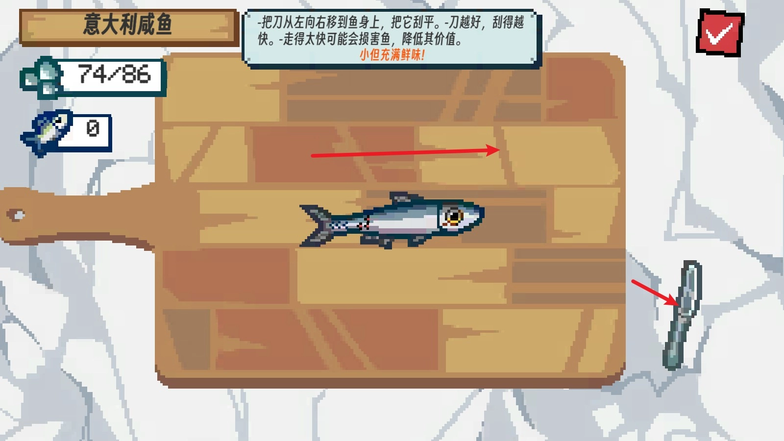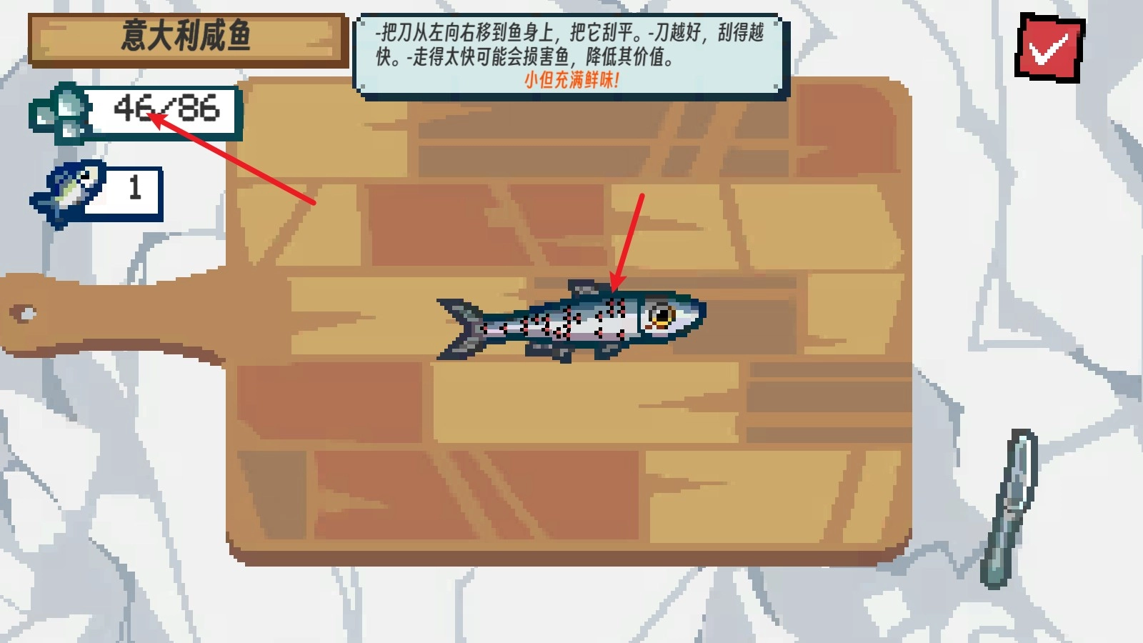 3、把鱼钓上来后,我们就能去船舱里刮鱼鳞了。
