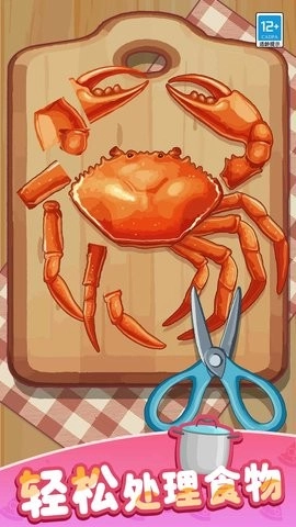 全流程料理操作:手指滑动完成切菜(划线分块)、煎炒(控制火候圈)、摆盘(自由拖拽装饰)。