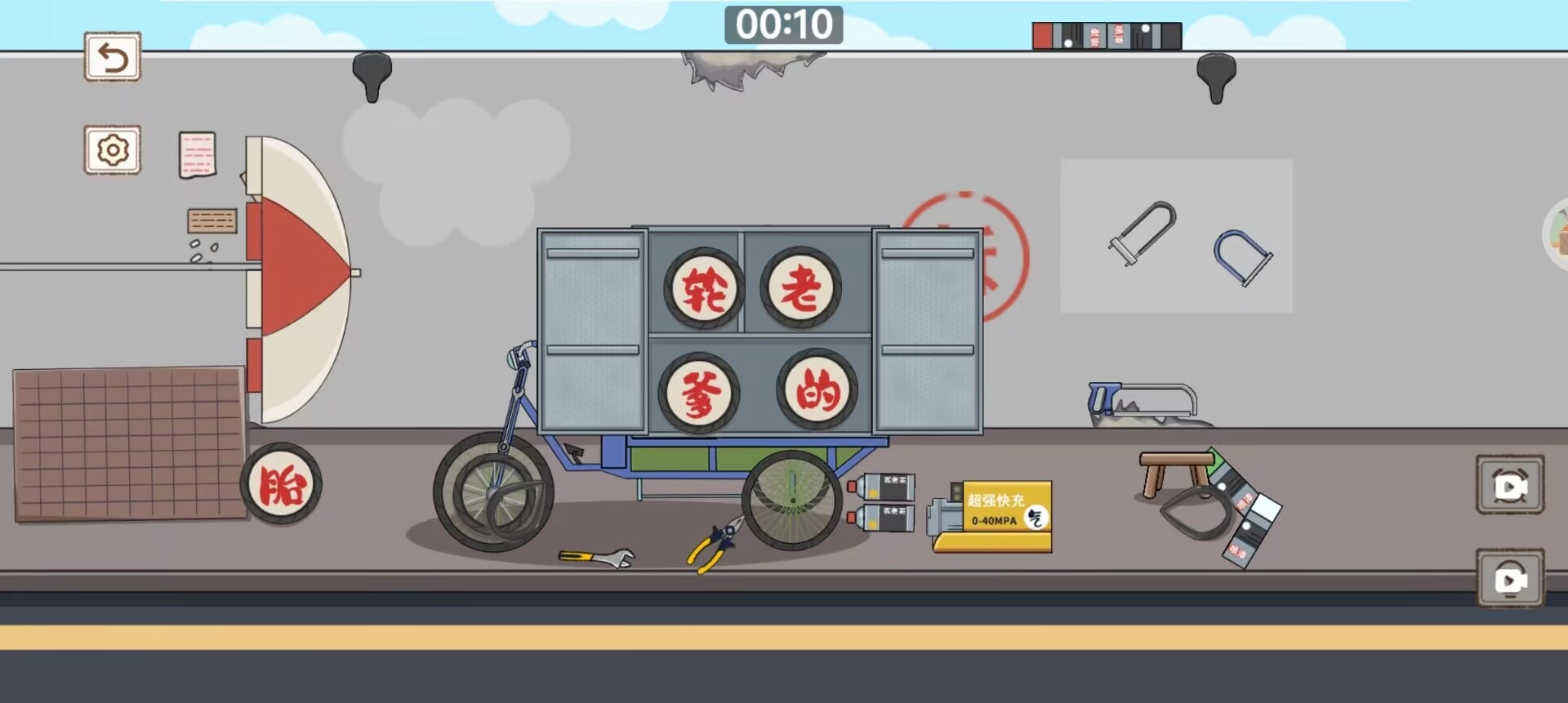 第三步,把所有能移动的物品以最合理的状态收纳进三轮车里就能顺利通关了。