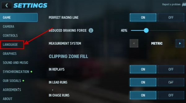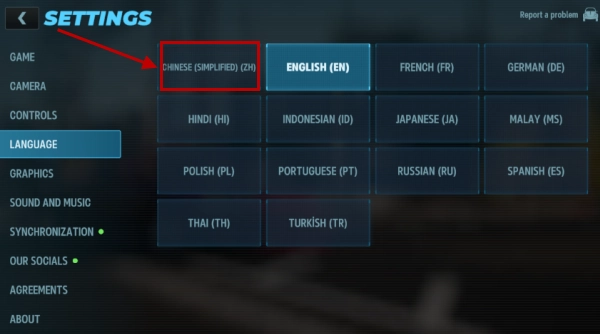 2、进入设置页面后,找到并点击“LANGUAGE”语言选项,即可打开语言切换列表。