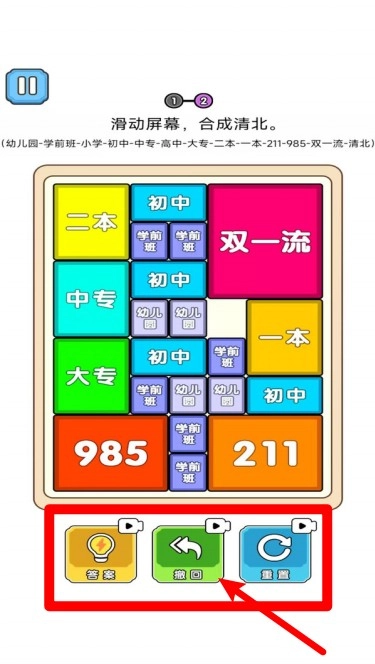 合成985高校是一款超适合碎片时间玩的小游戏,用手指滑动合并同学历的积木,从专科一路“升级”到清华北大,每一步都像拆盲盒——得盘算好空间和步数,别让合成卡住。清新的画风看着不费眼,关卡从简单到烧脑,越玩越停不下来。等公交、摸鱼的时候来一局,既能解压还能锻炼脑力!