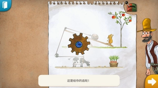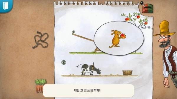 3、每道关卡都有不同的主题,就像下面这张图展示的那样,玩家要帮助马克尔顺利摘到苹果。