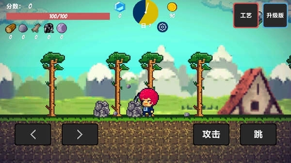 1、像素生存者寻找物资创造出有用的工具。