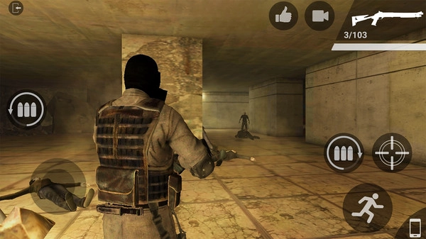 3.左下角的圆形虚拟摇杆可用于控制移动和转向,右侧的射击键与奔跑键需配合操作,当靠近目标点时便能进行互动,无论是战斗还是探索都更为顺手。