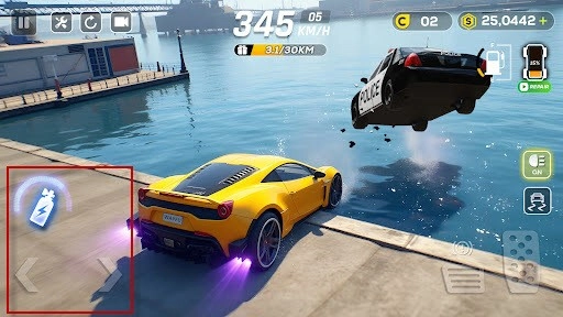 1、屏幕左下角可操控汽车的左右方向,上方的闪电图标对应氮气加速功能,能实现瞬间提速,但该功能需充能后使用,建议谨慎操作。