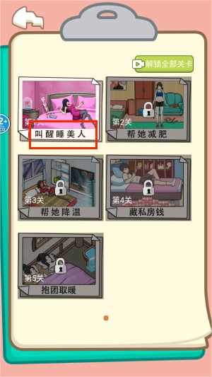 1、设有多个关卡,新手可从“叫醒睡美人”关卡开启挑战,完成该关卡后即可解锁后续关卡。