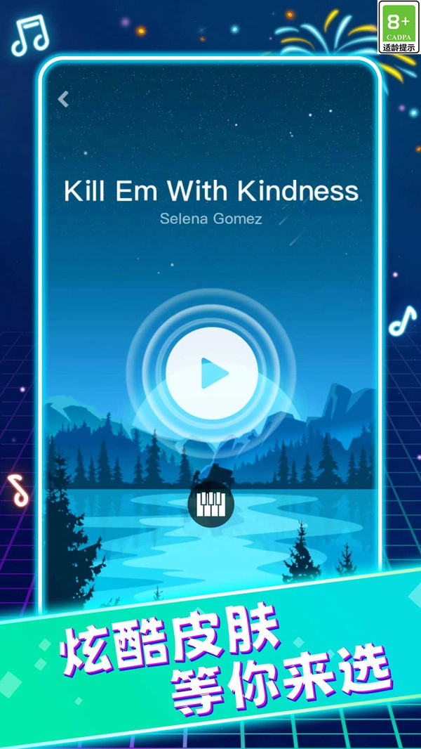 1、只需按照屏幕上的音符提示,用手指在对应的钢琴块上进行点击、滑动等操作,就能和音乐节奏达成完美契合。