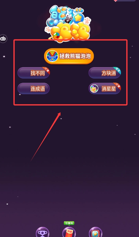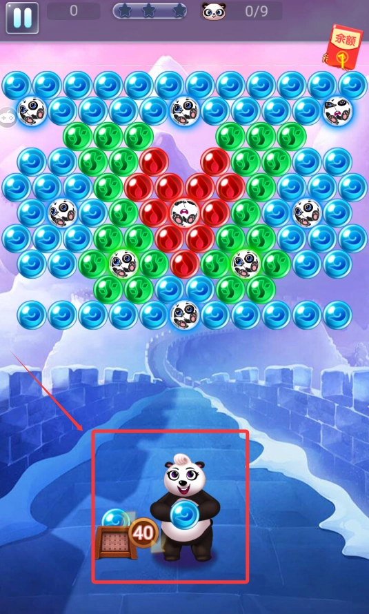 3,点击开始,利用熊猫手里的球球来消除泡泡,这样就能完成通关了。