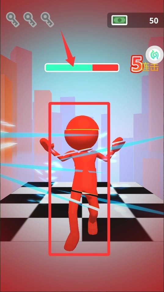 1、基础模式主要考验反应速度,要求玩家准确预判子弹轨迹并及时进行格挡。成功触发完美防御后会进入子弹时间效果,从而获得反击的机会。并且随着游戏进度的不断推进。
