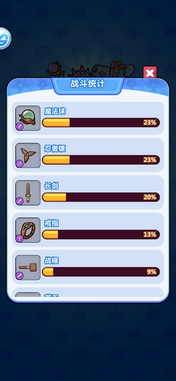 玩家也能在结算界面中查看自己各武器的战斗数据统计。