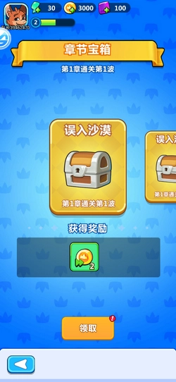 玩家在完成一个章节的通关后,可前往主界面领取属于自己的专属宝箱奖励。