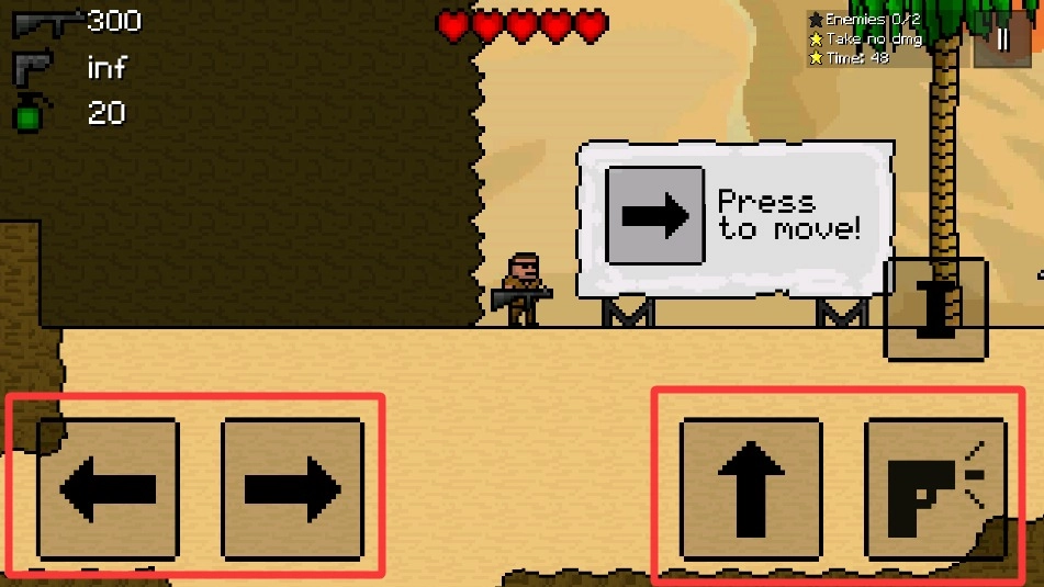 4、在实际操作中,通过左侧虚拟区域的滑动来控制移动方向,右侧则分别设置了跳跃键和射击键,以完成相应的战术动作。